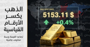 • الذهب عالمياً: ارتفع بنسبة 0.4% ليصل إلى 5153.11 دولار للأوقية في المعاملات الفورية.