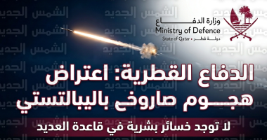 أفصحت وزارة الدفاع القطرية، في بيان رسمي نقلته وكالة الأنباء القطرية (قنا) اليوم، عن تعرض البلاد لهجوم صاروخي تمثل في إطلاق صاروخين باليستيين من الجانب الإيراني، وأوضحت الوزارة أن المنظومات الدفاعية كانت في حالة استنفار كامل للتعامل مع هذا التهديد الخارجي لحظة رصده.