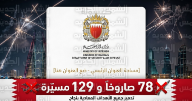 من جانبها، كشفت القيادة العامة لقوة دفاع البحرين عن نجاح منظومات الدفاع الجوي في التصدي لموجات متتابعة من الهجمات الإرهابية، ووفقاً لبيان رسمي نقلته وكالة الأنباء البحرينية (بنا)، تمكنت القوات من تحقيق النتائج التالية: