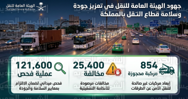 • رصد 25.4 ألف مخالفة تشغيلية وحجز 854 مركبة لضمان سلامة قطاع النقل البري.