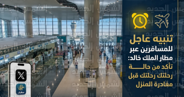 أصدرت إدارة مطار الملك خالد الدولي بالرياض، اليوم الثلاثاء 3 مارس 2026 (الموافق 14 صفر 1447 هـ)، تنبيهاً عاجلاً لكافة المسافرين عبر الصالات الدولية والداخلية، شددت فيه على ضرورة التأكد من حالة الرحلات الجوية وجدولتها قبل مغادرة المنازل، وذلك لضمان انسيابية الحركة وتجنب أي تأخيرات ناتجة عن الظروف الراهنة.