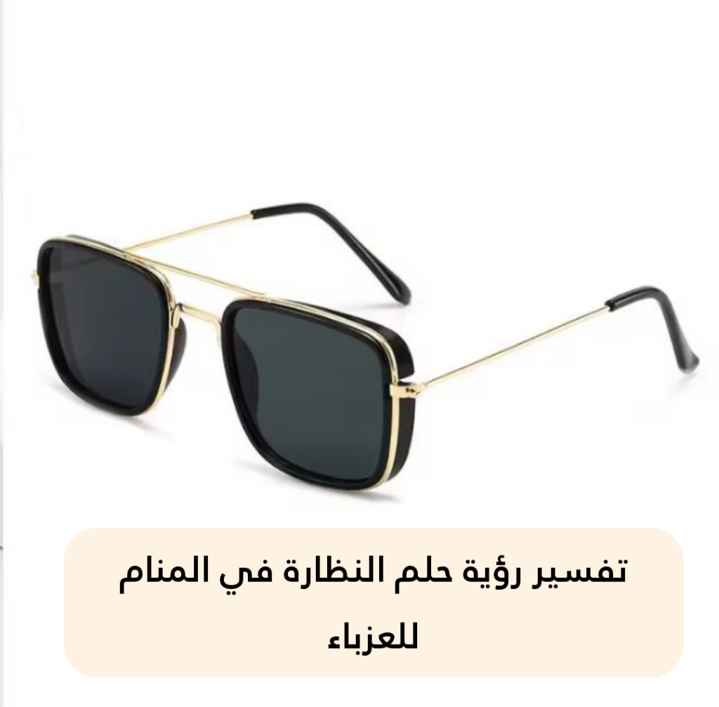 - رؤية الفتاة العزباء لنَظّارة سوداء في الحلم يَدلّ على طموحات كبيرة تسعى لتحقيقها في الواقع رغم ما تمر به من ضغوط ومُعيقات حيث تُشير هذه الرؤية إلى أنها إنسانة تمتلك إرادة قوية وإصرار يتجاوز العقبات وقد تكون دلالة على نجاحات قادمة في حياتها العملية والعاطفية بإذن الله تعالى.