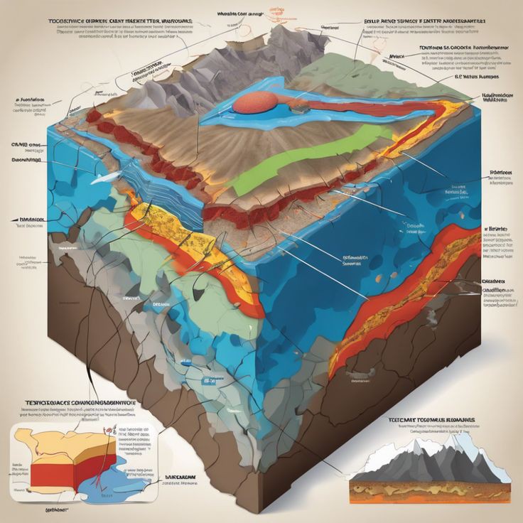 - الغلاف الصخري للأرض مُكوّن من عدة صفائح تكتونية يُقدر عددها بحوالي 8 صفائح رئيسية كبيرة بالإضافة إلى مجموعة من الصفائح الثانوية الأصغر التي تتوزع بمناطق مختلفة على سطح الأرض.