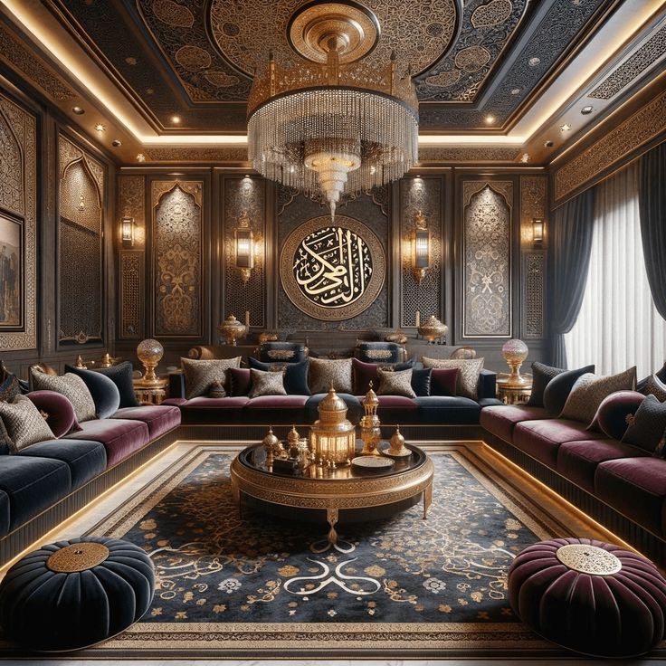 • يمكن دمج لوحات فنية تجريدية ذات ألوان متداخلة أو لوحات مزخرفة بزخارف هندسية أو عربية تعكس حسًا فنيًا مميزًا.