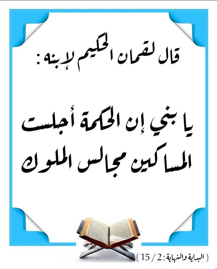 • يَا بُنَيَّ جَالِسِ العُلَمَاءَ وَتَقَرَّبْ مِنْهُمْ فَإِنَّ اللَّهَ يُنِيرُ بِالْحِكْمَةِ القُلُوبَ كَمَا يُحْيِي الأَرْضَ بِالمَطَرِ.