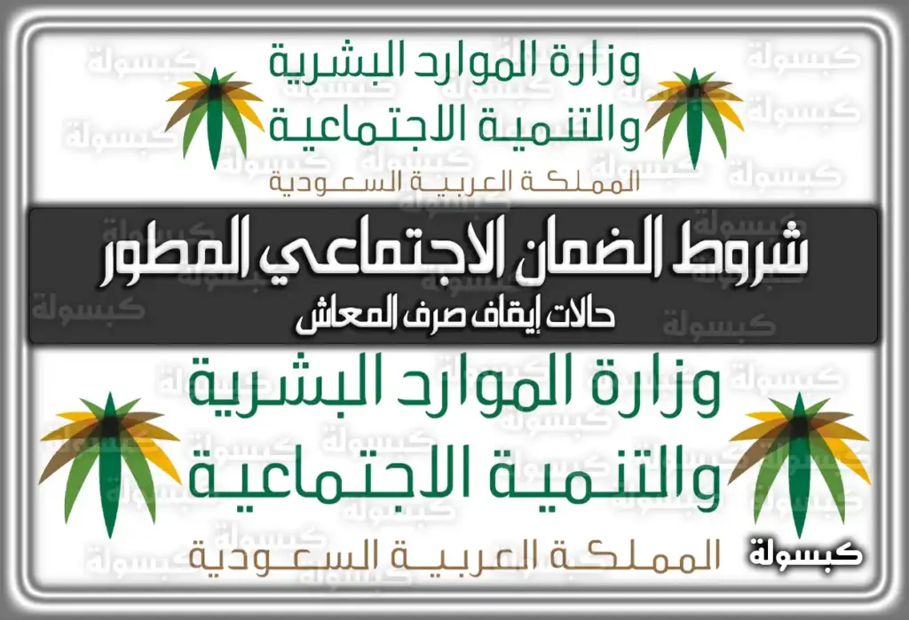 - يتم إيقاف للمعاش في حالة عدم مراعاة أي شرط من الشروط المعلن عنها من قبل تظارة الموارد البشرية والتنمية الاجتماعية.