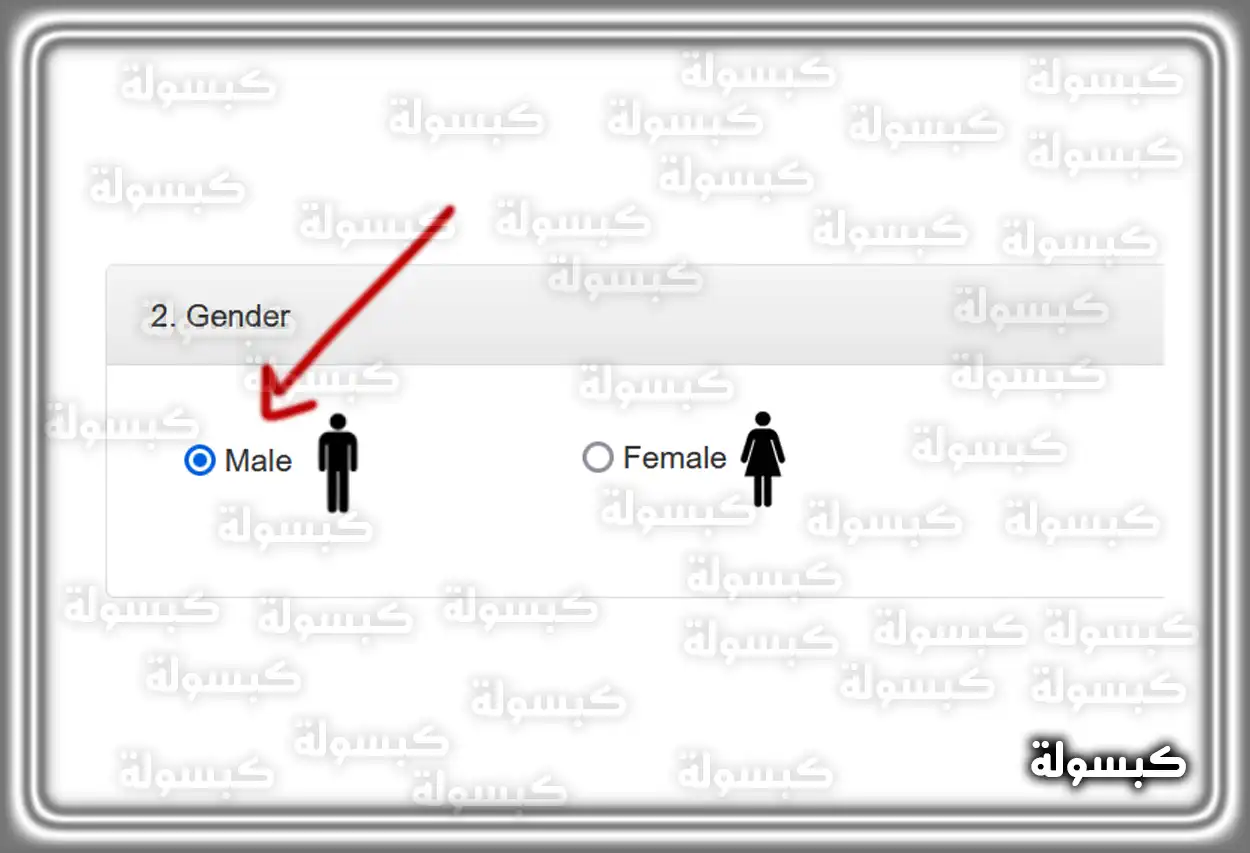 نروح بعد كده على خانة الجنس / Gender حسب المثال اللي أديناه هتختار Male.