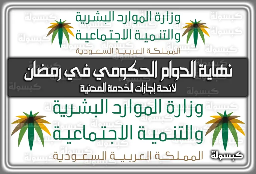 نهاية الدوام الحكومي في رمضان، بنحكي لكم عن وقت خروج الدوام في رمضان وهذا الشي مهم جداً لكل العاملين عندنا في المملكة العربية السعودية لأنهم يبغون يعرفون كم يوم إجازة بياخذون في عيد الفطر المبارك وكل هذا يجي وفق الأوامر والتعليمات الرسمية اللي نزلتها وزارة الموارد البشرية والتنمية الاجتماعية ووزارة الخدمة المدنية والحين نجي للمهم فَهنا بمشيئة الله تعالى عبر موقع “كبسولة للخدمات السعودية” راح نعطيكم كل التفاصيل الدقيقة عن الإجازة اللي الموظفين بيحصلون عليها وكمان عن مواعيد الرجعة للدوام بإذن الله تعالى في هالمقال.