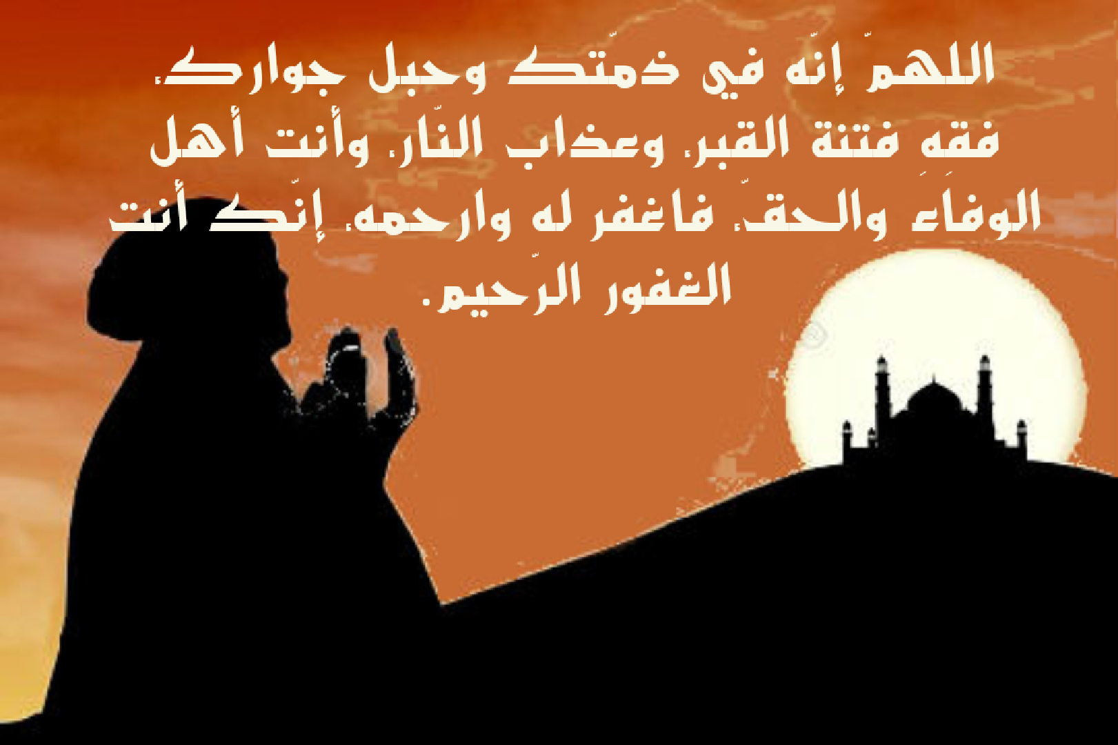 - اللهم اجعل من سبقونا إلى رحمتك ثابتين على الصراط المستقيم، اللهم اجمعهم بنبيك محمد ﷺ على حوضه الشريف، يا واسع الرحمة ارحمهم برحمتك الواسعة واغفر لهم مغفرة تطمئن بها قلوبنا.