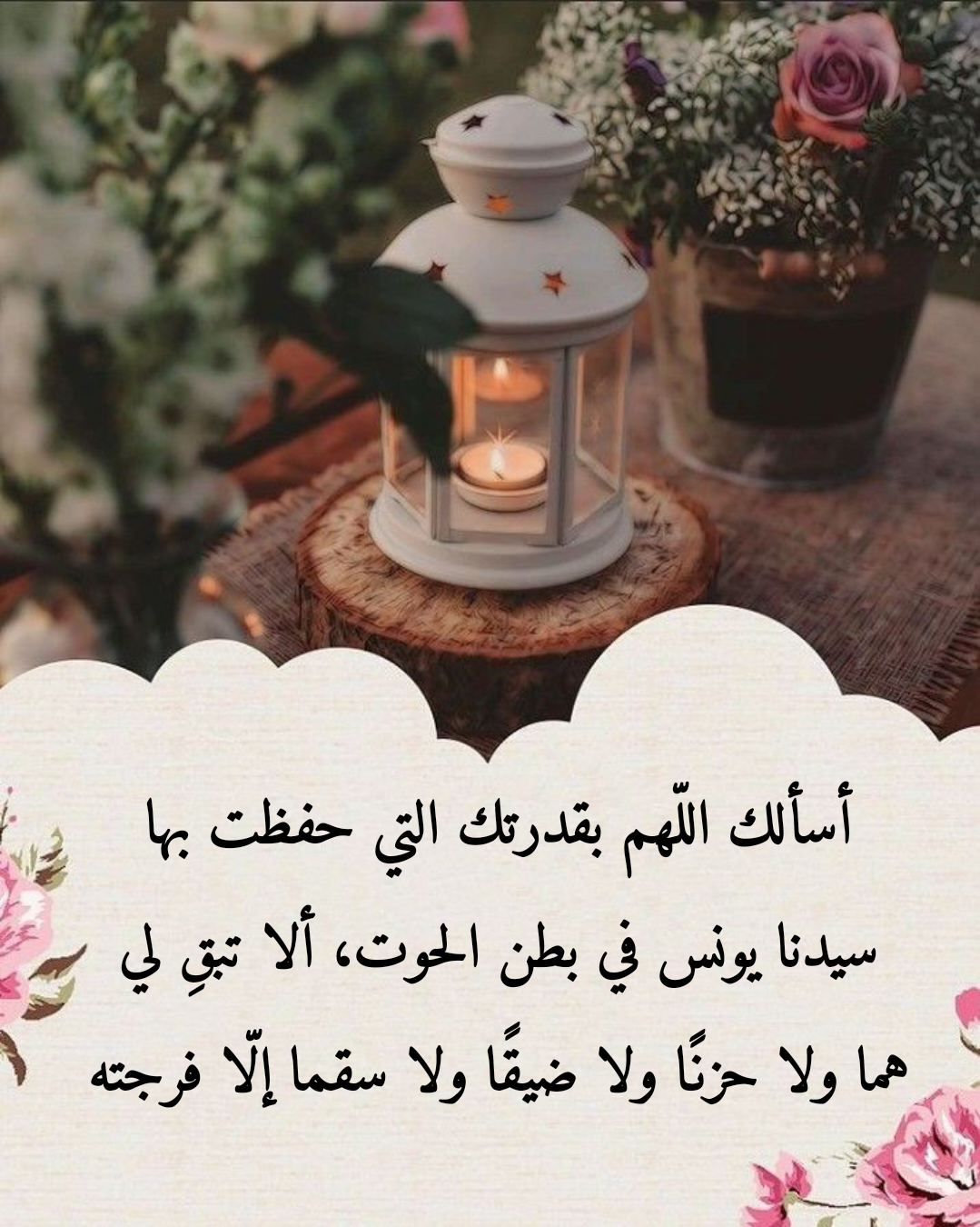 • سبحانك يا الله لا إله إلا أنت وحدك تعلم ما في الصدور اللهم إن بين ضلوعنا همًا لا يكشفه إلا أنت وكربًا لا يُفرجه إلا رحمتك اللهم يا أنيس المستوحشين ويا مُجيب دعوة الداعين سُق إلينا الصبر واجعل في نفوسنا الطمأنينة وأبدل ضيق أرواحنا بفرجٍ من عندك.