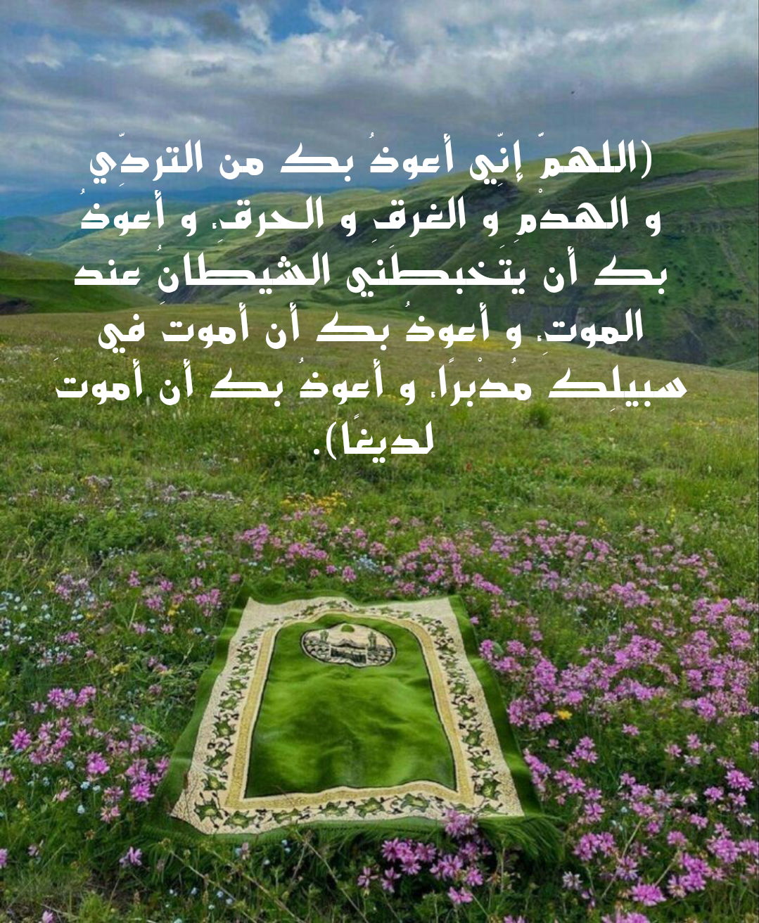 • اللهم اجعل لي من كل هم فرجًا ومن كل كرب مخرجًا ومن كل بلاء عافية وامنحني الصبر على ما كتبته لي وارزقني رضاك الذي يغمر القلب وراحة لا تنقطع وسعادة تعمر أيامي ووفقني في كل خطواتي برعاية منك وعناية مستمرة.