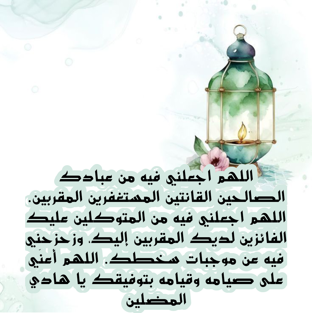اللّهم زدني من بركات هذا الشهر وألهمني حسن اغتنام أوقاته ولا تحرمني قبول صالح أعمالي يا هادي التائهين.