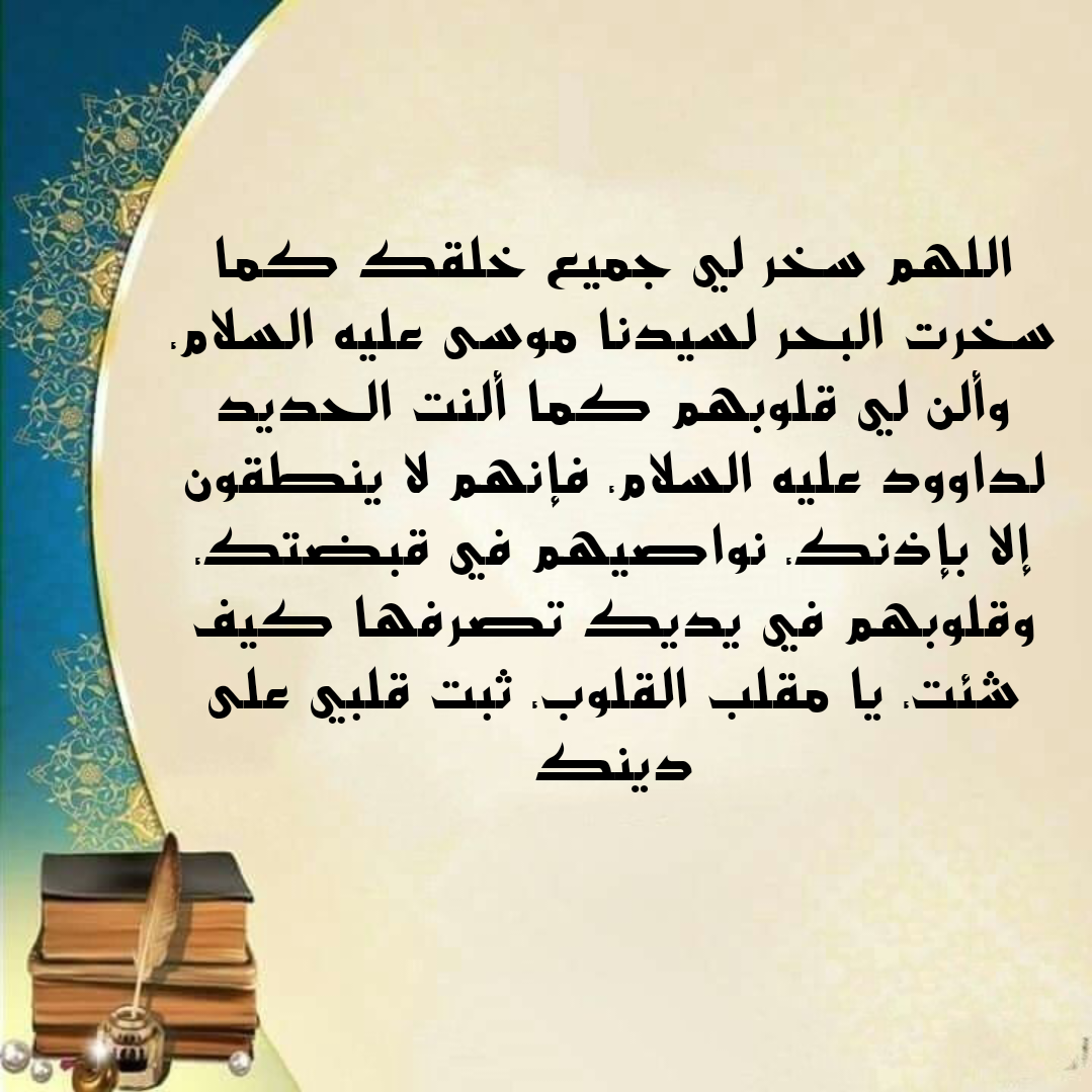 - يا الله الذي ورد عنه في كتابه الكريم (وعلمناه من لدنا علماً) علمني يا رب علماً يجلب البركة لحياتي والراحة لقلبي ويقودني نحو محبتك ورضاك ويفتح لي طريق السعادة واليقين.