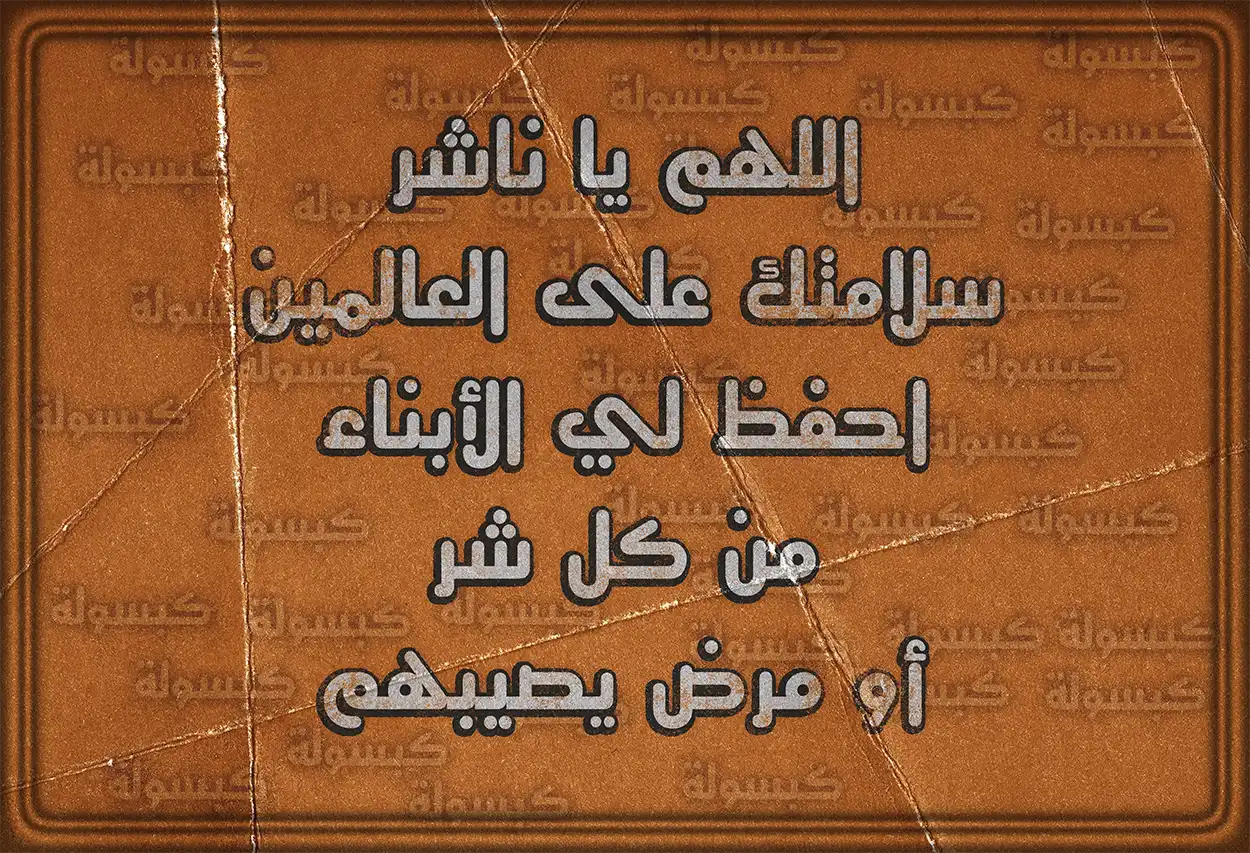 - اللّهُمَّ أسألك برحمتك وعطفك أن تَحمِ أبنائي من كُل أذى وسوء وتغمرهم بالعافية والصحة وأن تحيطهم بحمايتك ورعايتك وتُبعد عنهم كُل مكروه يا رب العالمين.