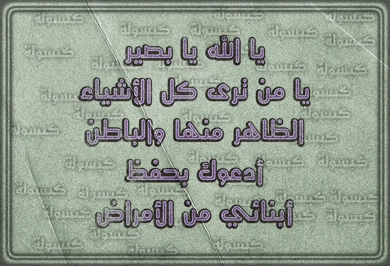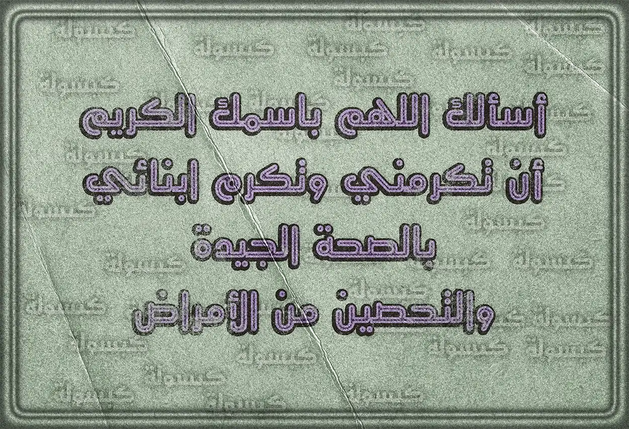 - اللهم اجعل أجساد أبنائي في عنايتك الدائمة واصرف عنهم أمراض الدنيا ومتاعبها وامنحهم مما عندك من لطف ورحمة صحة لا تنقطع يا أكرم الأكرمين.