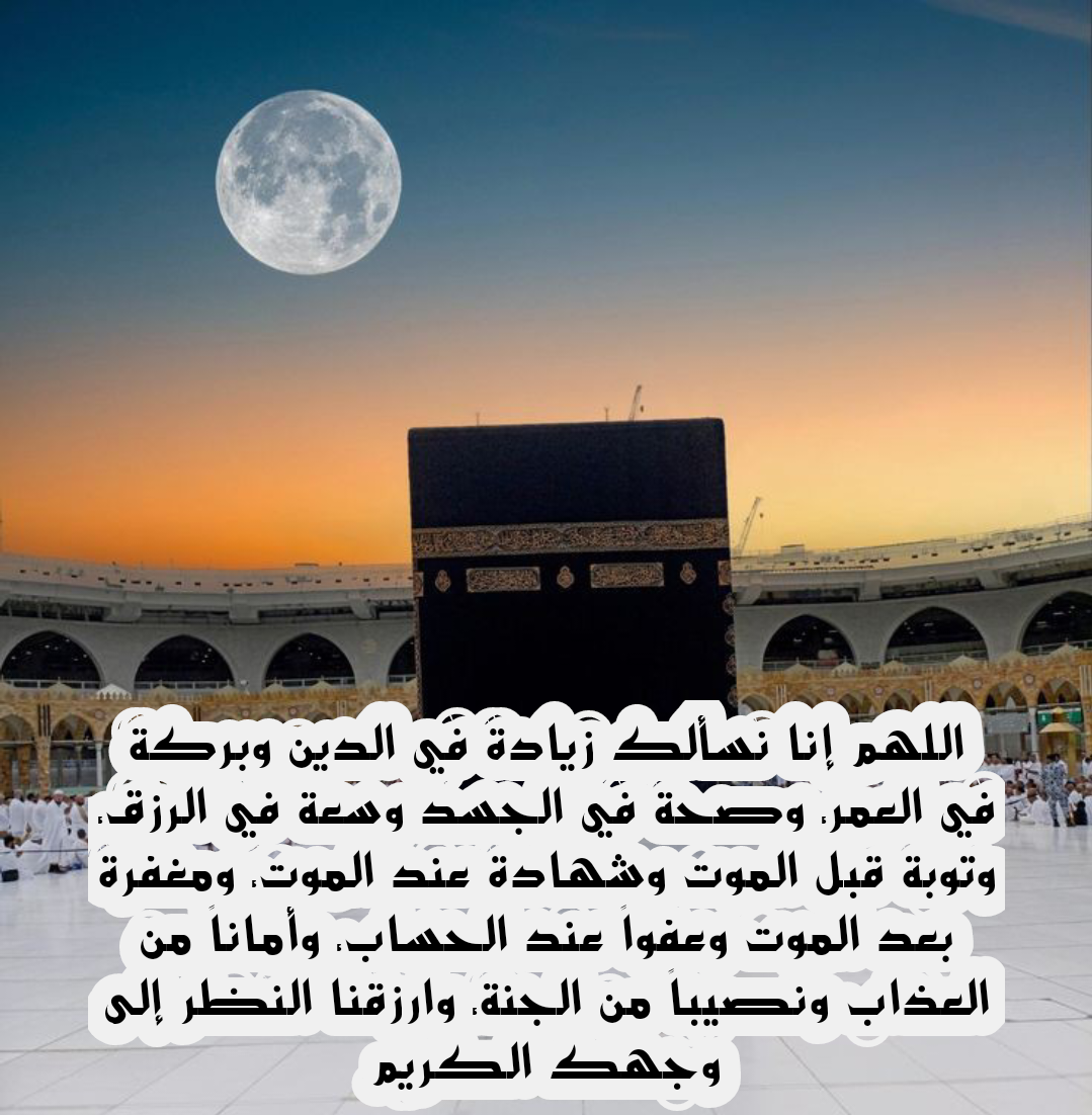 - اللهم اجعل لذة النظر إلى وجهك الكريم والشوق إلى لقائك أعظم أمنياتي ولا تجعلني ممن تضلهم الفتن أو تؤذيهم المحن اللهم زينا بزينة الإيمان وألهمنا رشدنا واجعلنا من عبادك الصالحين.