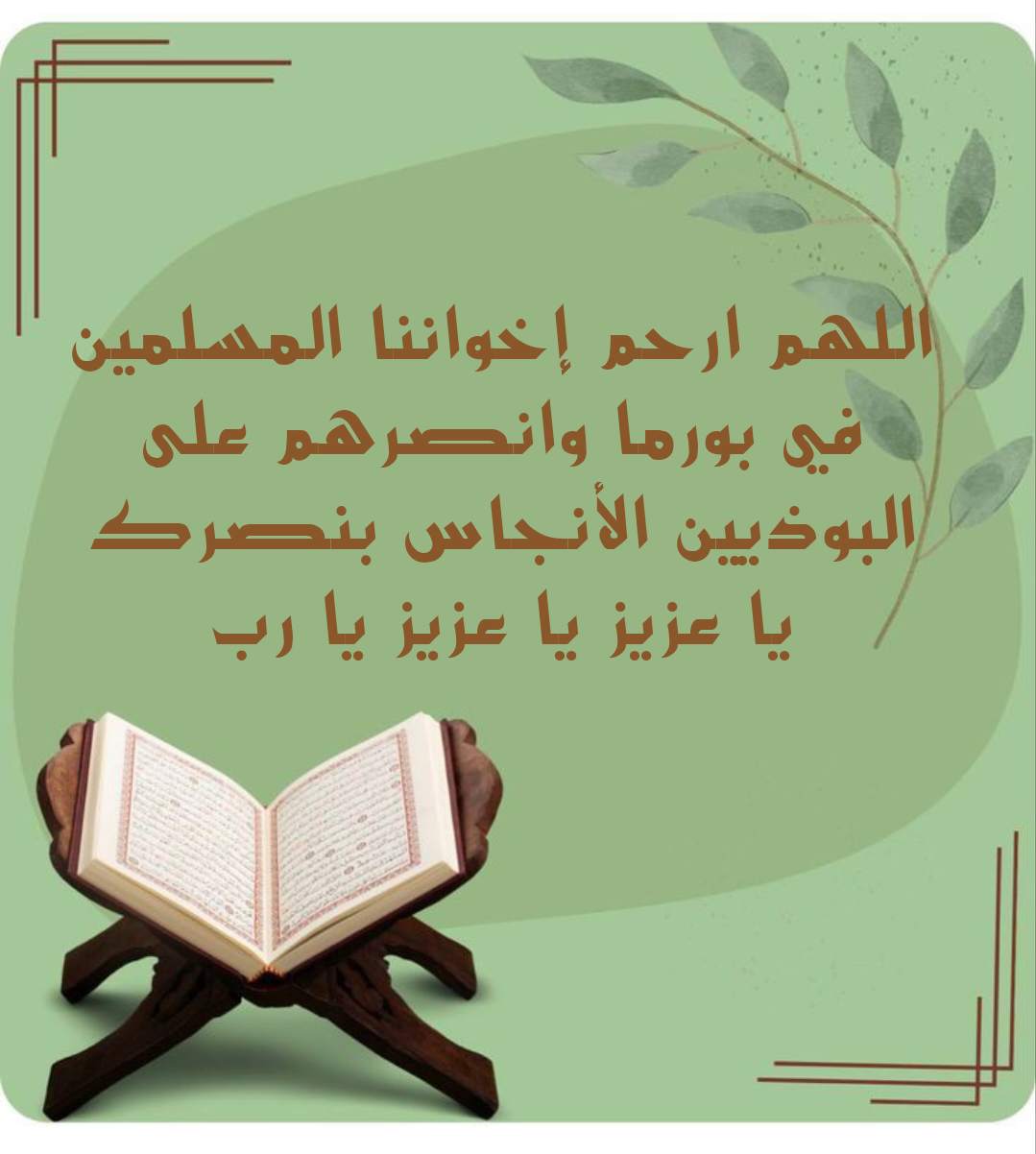 - اللهم ارزق مسلمين بورما من يستجيب لهم دعواتهم ويقوي عزمهم ويبدل حالهم لحال أفضل يا أرحم الراحمين.