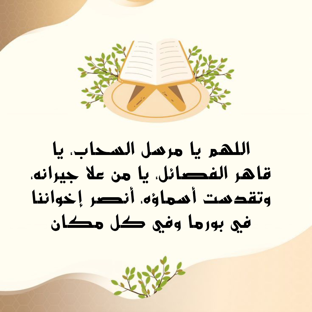 - اللّهم قوِّ أهل بورما بحولك وقوتك وامددهم بنصرك وعزتك وكن لهم سنداً يا صاحب القوة والجبروت.