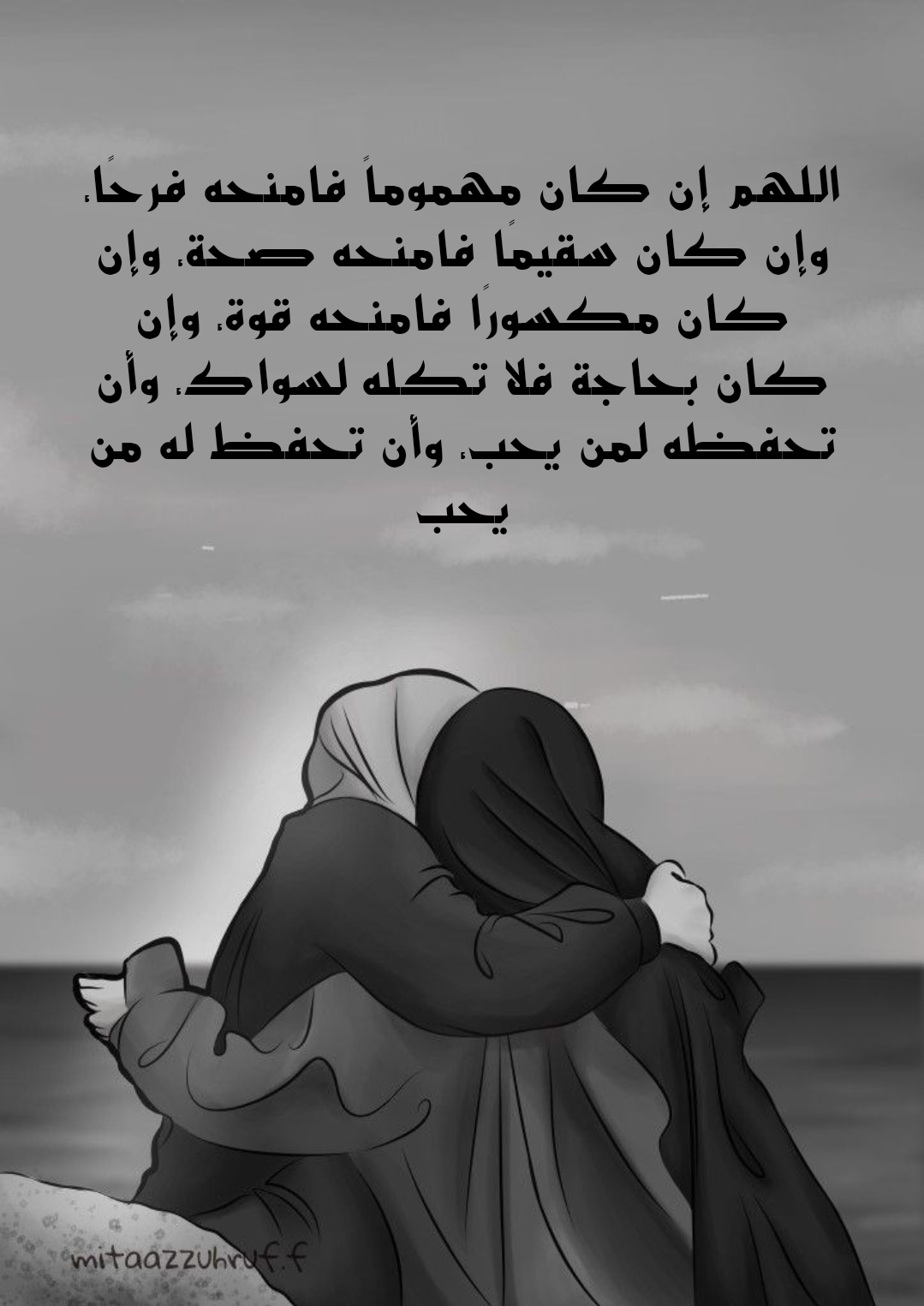 - اللهم بقدرتك العظيمة التي أنجيت بها نبيّك يونس من بطن الحوت وبرحمتك التي شفيت بها عبدك أيوب بعد البلاء أتوسل إليك أن تبعد عن صديقي الهمّ والحزن وضيقة الصدر وأن تحفظه من كل سوء وألم يا أرحم الراحمين.