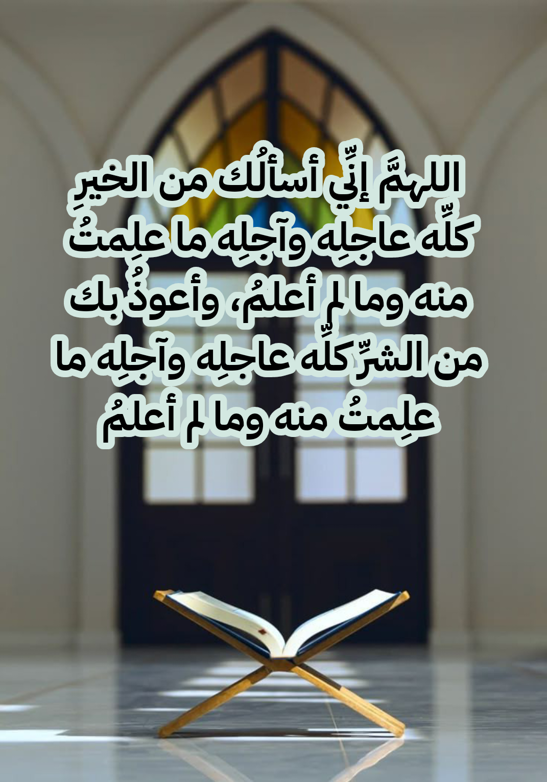 - اللهم إن أنعمت عليَّ بشيء مما أحب فاجعله وسيلة تقربني منك وتجعلني من الشاكرين لك وإن صرفت عني شيئًا مما أرجوه فاجعل في ذلك فراغًا أستغله فيما يرضيك عني ويزيدني قربًا منك.