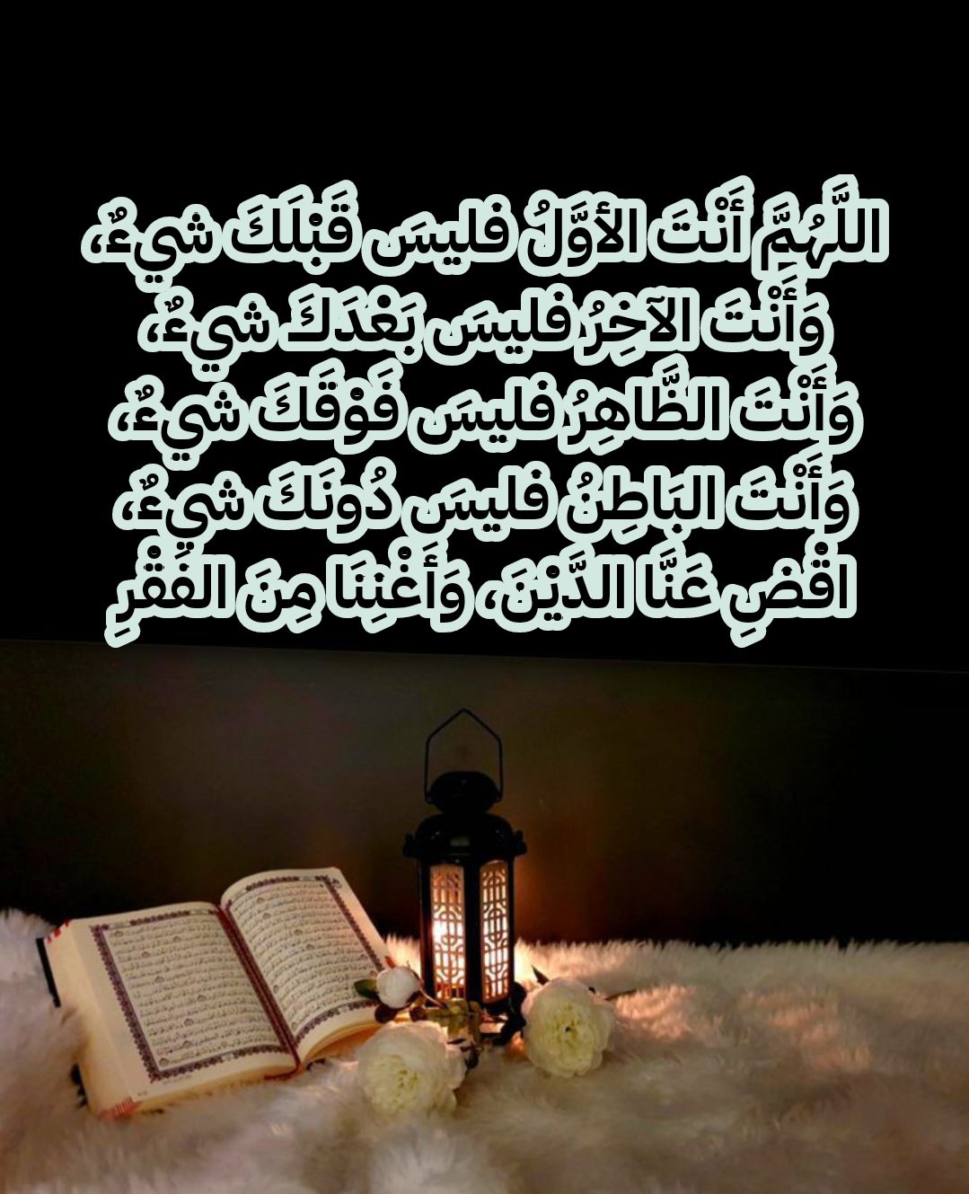 اللهم إنك تعلم سري وعلانيتي فاقبل معذرتي وتعلم حاجتي فامنحني سؤلي وتعلم ما في نفسي فاغفر لي ذنوبي اللهم إني أسألك قلبًا مطمئنًا بالإيمان ويقينًا صادقًا حتى أوقن أنه لن يصيبني إلا ما كتبته لي والرضا بما قسمت لي يا ذا الجلال والإكرام.