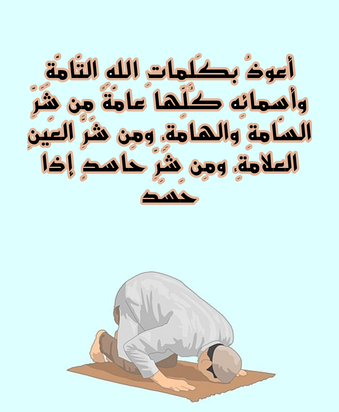 - أعوذ بكلماتك التامة التي لا يشوبها نقص ولا خلل من سخطك وعقابك ومن شرور خلقك ومن وساوس الشياطين التي تحاول إبعادي عن طريقك.