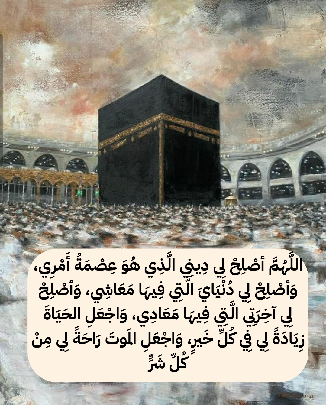 - يا الله، هذه أيام عظيمة تفيض بالخير والبركة، عبادك اجتمعوا في رحاب أرضك، يحمل كل واحد منهم دعاءً في قلبه، يسألك من فضلك ويتوسل إليك برحمتك، وأنت المطلع على حاجاتهم والمجيب لدعواتهم. أسألك برحمتك الواسعة وقدرتك التي لا يُعجزها شيء أن تصلي على سيدنا محمد وآله، وأن لا تُخرجنا من هذه الأيام إلا وقد نلتنا من فضلك، وأسعدت قلوبنا، وقضيت حوائجنا، وثبّت لنا أجمل الأقدار.
