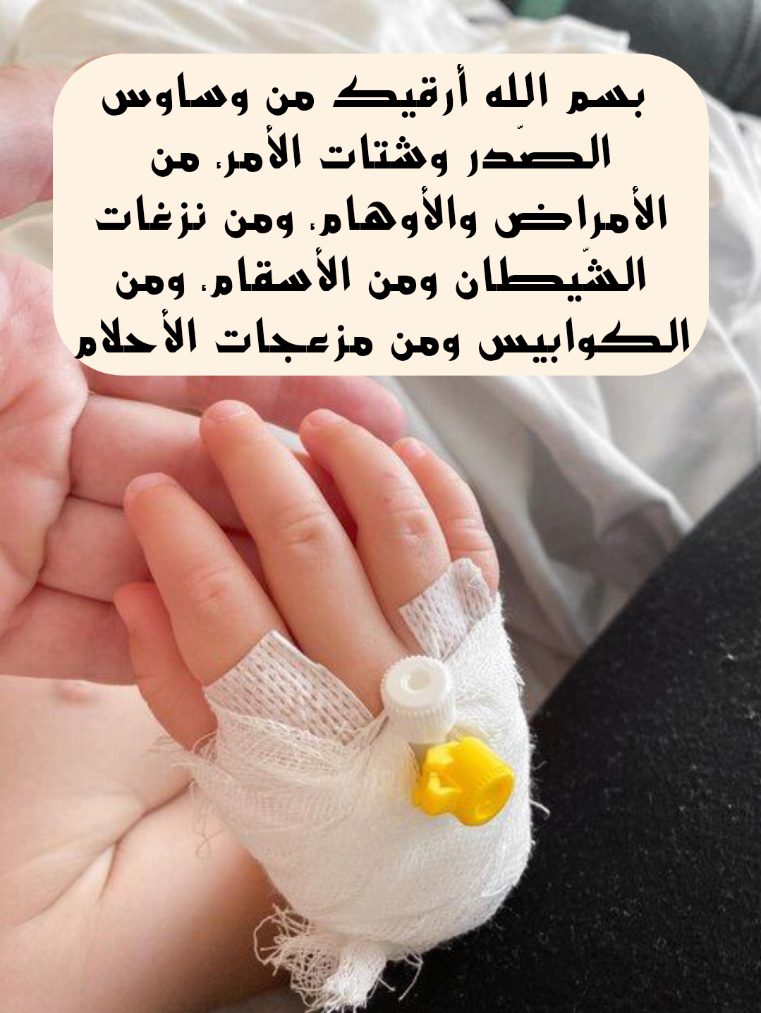 - يا رب احمه بعينك التي لا تنام واكلأه برعايتك التي لا تضيع وأكرمه بصحبة العافية والسلامة اللهم لا تترك فيه ألمًا إلا أزلته ولا وجعًا إلا سكنته ولا ضعفًا إلا قوّيته اللهم نسألك من كرمك الواسع ومن رحمتك التي تغمر كل شيء أن تشمله بعافيتك وترزقه القوة وتحفظه من كل ضرر وسوء.