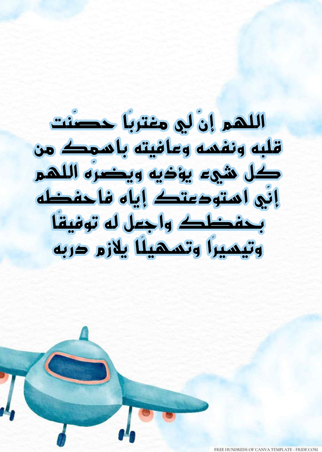 - اللهم احفظه بعينيك التي لا تغفل ولا تنام واجعل حوله حفظك الذي لا ينخرم وامنحه عافيتك وقوتك ورُده إلينا سالمًا وغانمًا وأعده هو وكل مغترب بأمان واطمئنان إلى أهله وديارهم.