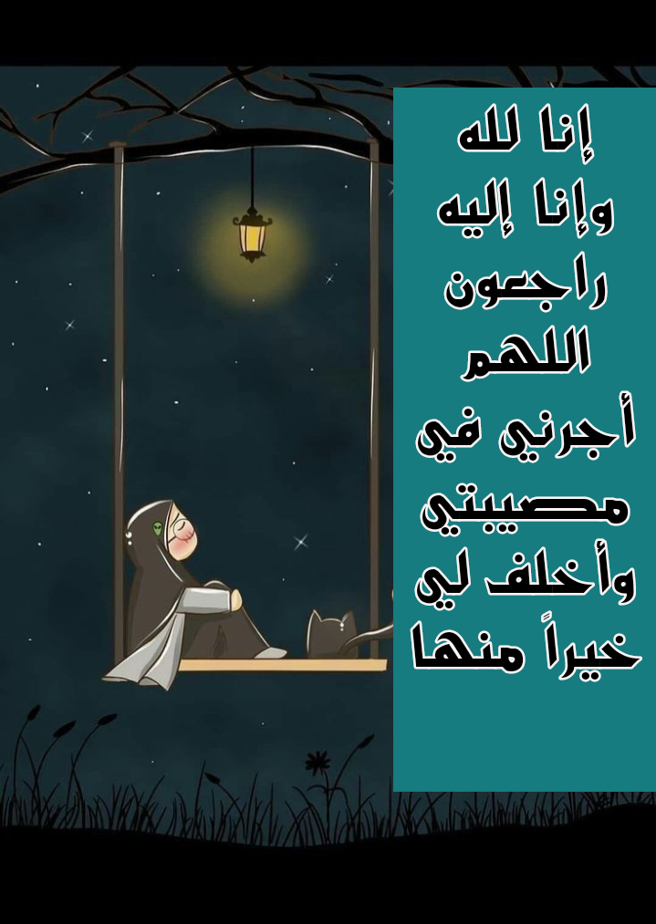 - «إنآإ للهـ♥̨̥̬̩ وإنآإ إليهـ♥̨̥̬̩ رآإجـ♥̨̥̬̩عون، آإللهـ♥̨̥̬̩مـ♥̨̥̬̩ أجـ♥̨̥̬̩رني في مـ♥̨̥̬̩صيبـ♥̨̥̬̩تـ♥̨̥̬̩ي وأخلف لي خيرآإً مـ♥̨̥̬̩نهـ♥̨̥̬̩آإ».