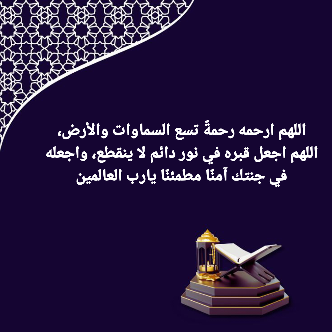 - يا من ودع الحياة وفارق أحبته اجعل يا رب لياليه في الجنة أعيادًا لا تنقطع وسعادة لا تزول، وعوضه عن كل ألم عاشه في الدنيا بنعيم لا ينتهي.