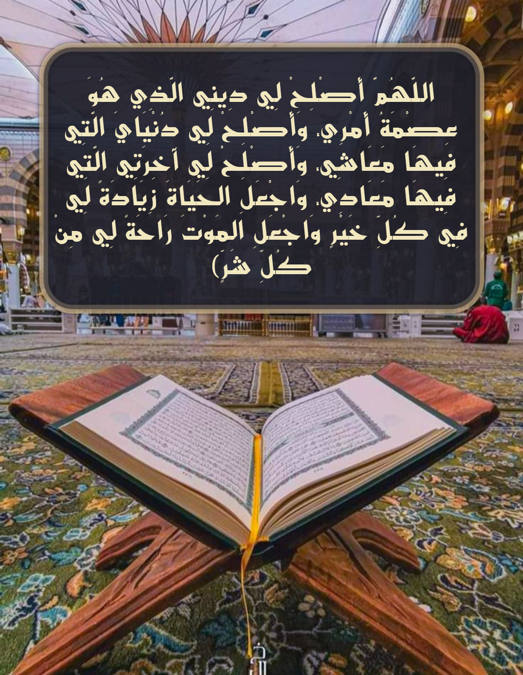 - اللهم يا من بيده ملكوت كل شيء يا من تقول للشيء كن فيكون نسألك برحمتك التي وسعت كل شيء أن تغفر لنا ذنوبنا وتستر عيوبنا وتوفقنا لما تحب وترضى وتقربنا إليك وتقذف في قلوبنا محبتك ومحبة من يحبك.