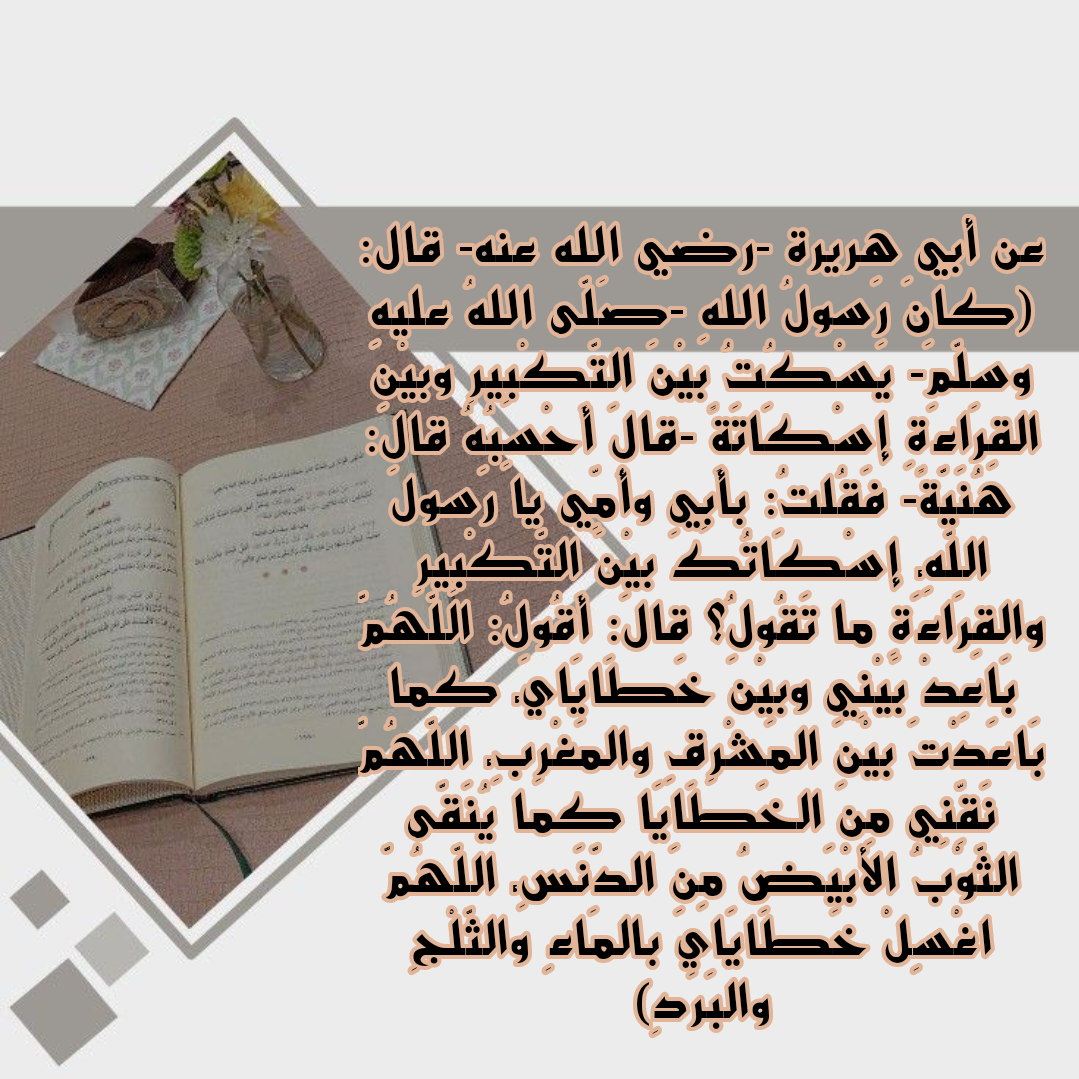 - يارب باعد بيني وبين خطاياي كما باعدت بين المشرق والمغرب، اللهم نقني من خطاياي كما ينقى الثوب الأبيض من الدنس اللهم اغسلني من خطاياي بالثلج والماء والبرد.