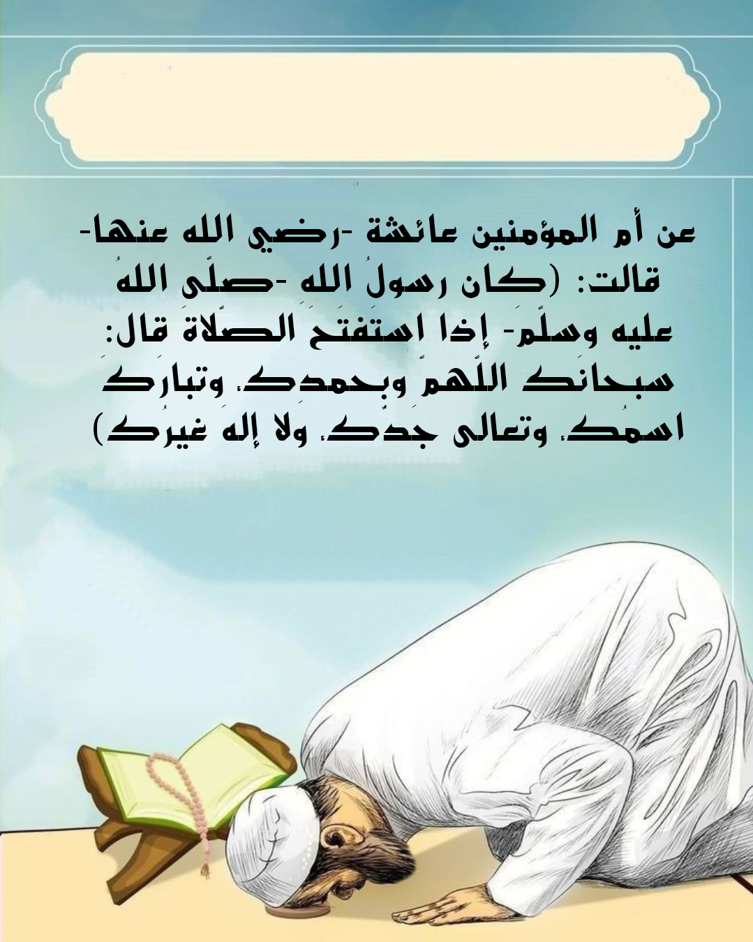 - سبحانك اللهم وبحمدك وتبارك اسمك وتعالى جدك ولا إله غيرك.