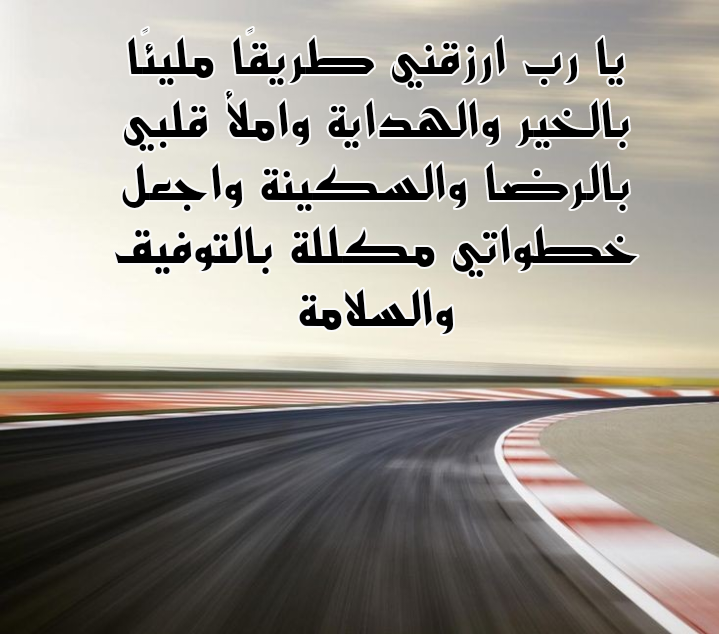 - اللهم إذا كان الطريق الذي أسير فيه محفوفًا بالصعوبات فأسألك أن تُيسّر لي خُطاي وتجعل السلامة والأمان رفيقي وتُمدني بالخير والبركة لي ولجميع المارّين فيه يا واسع الرحمة ويا لطيف التدبير.