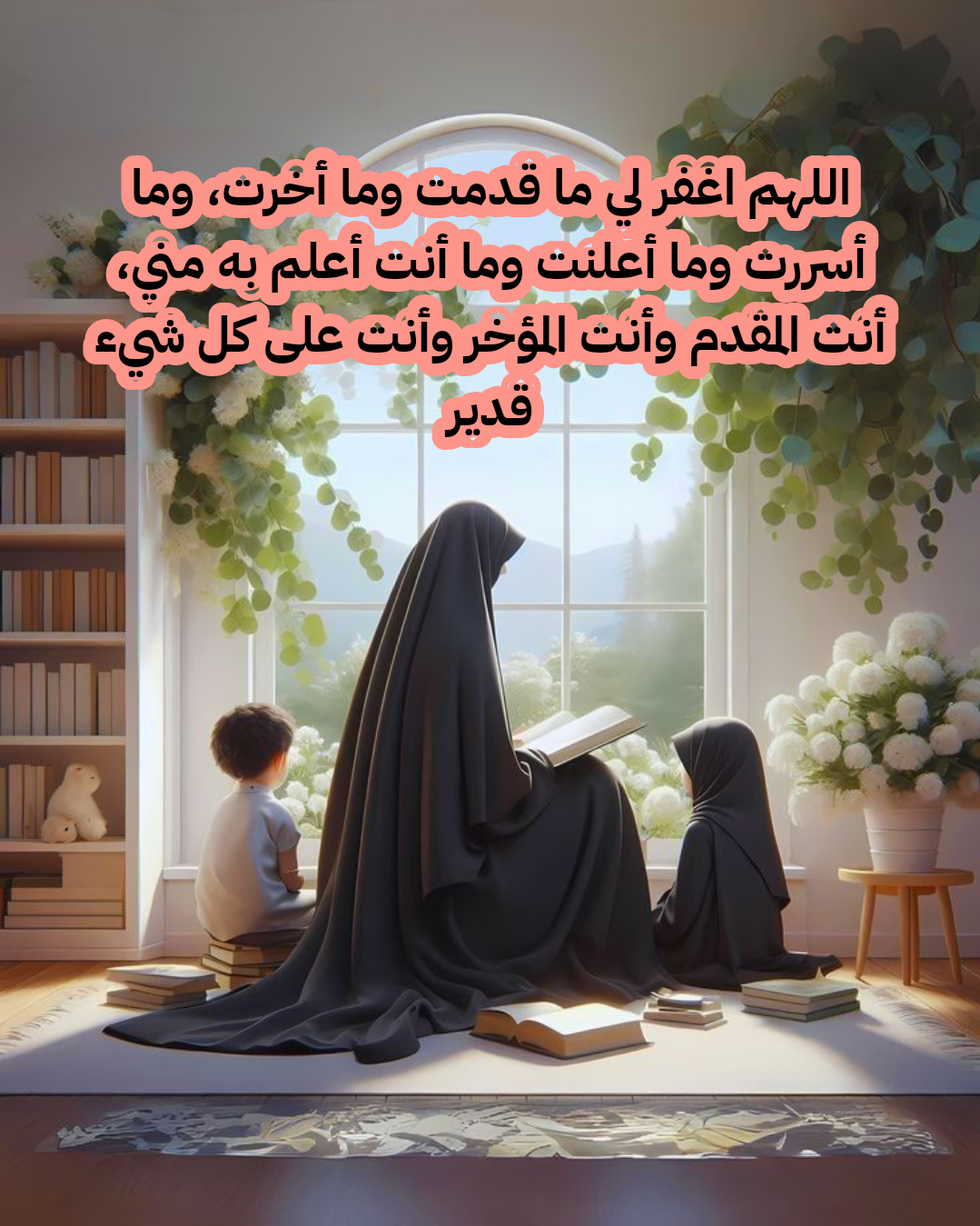 - يا الله اغفر لي جميع ذنوبي، ما أسررت منها وما أعلنت وما قدمت وما أخّرت، واهدني إلى التوبة الصادقة النصوح قبل أن يحين الأجل وأغادر هذه الدنيا.