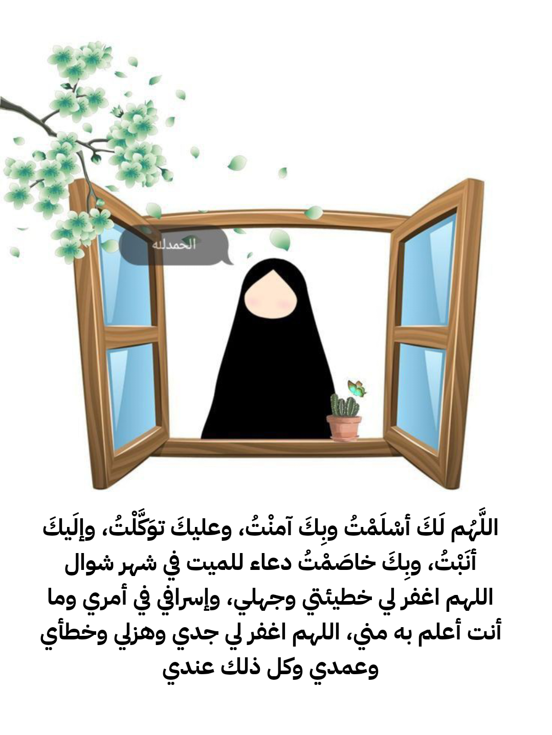 - اللهم اغفر لي زلاتي وتجاوز عن تقصيري وأنزل عليّ رحمتك التي وسعت كل شيء وأكرمني بلطفك الذي لا ينفد.