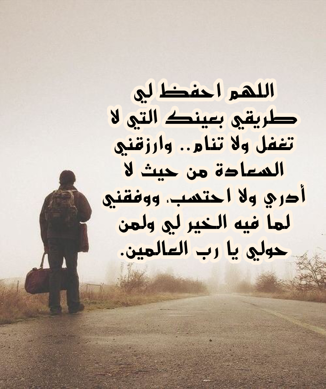 - اللهم اجعل طريقي عامرًا بذكرك واغمرني بعنايتك وامنحني السكينة والتيسير وأبعد عني كل مكروه واحفظني بحفظك يا أرحم الراحمين.