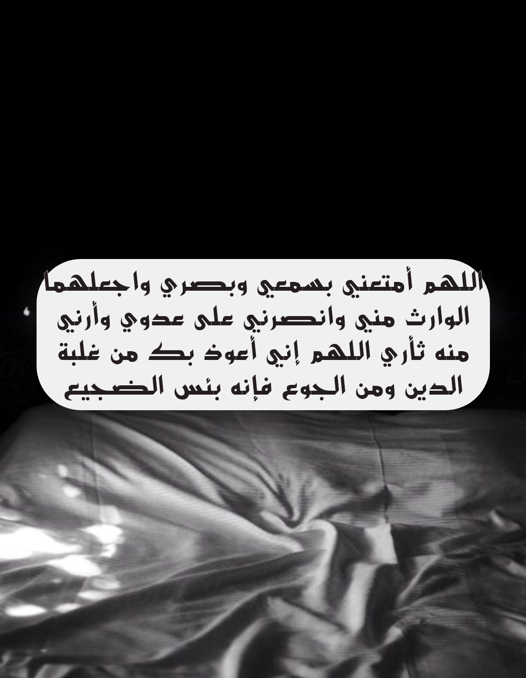 • باسمك اللهم أضع رأسي فأستودعه لديك وبك أرفعه، اللهم إن قبضت نفسي فارحمها وإن أرسلتها فاحفظها كما تحفظ عبادك الصالحين.