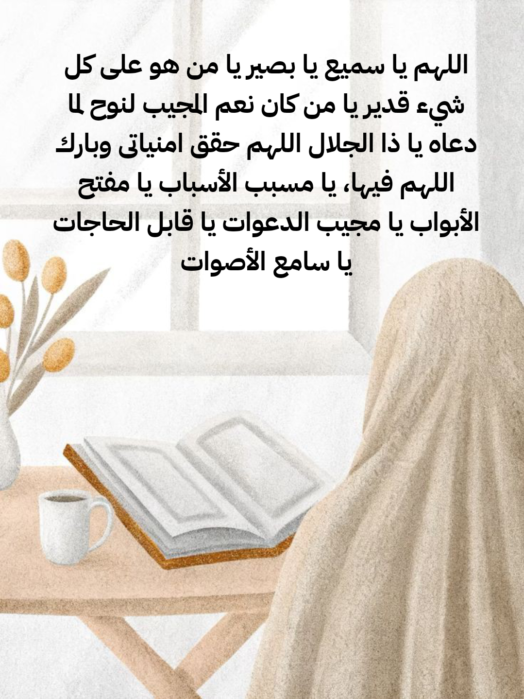 - يا الله، أنت الواحد الأحد أعلم بحالي وضعفي فاجعل لي من لدنك فرجًا يملأ قلبي بالطمأنينة وأعنّي على الصبر حتى تأتي أقدارك بما تسرّ نفسي.