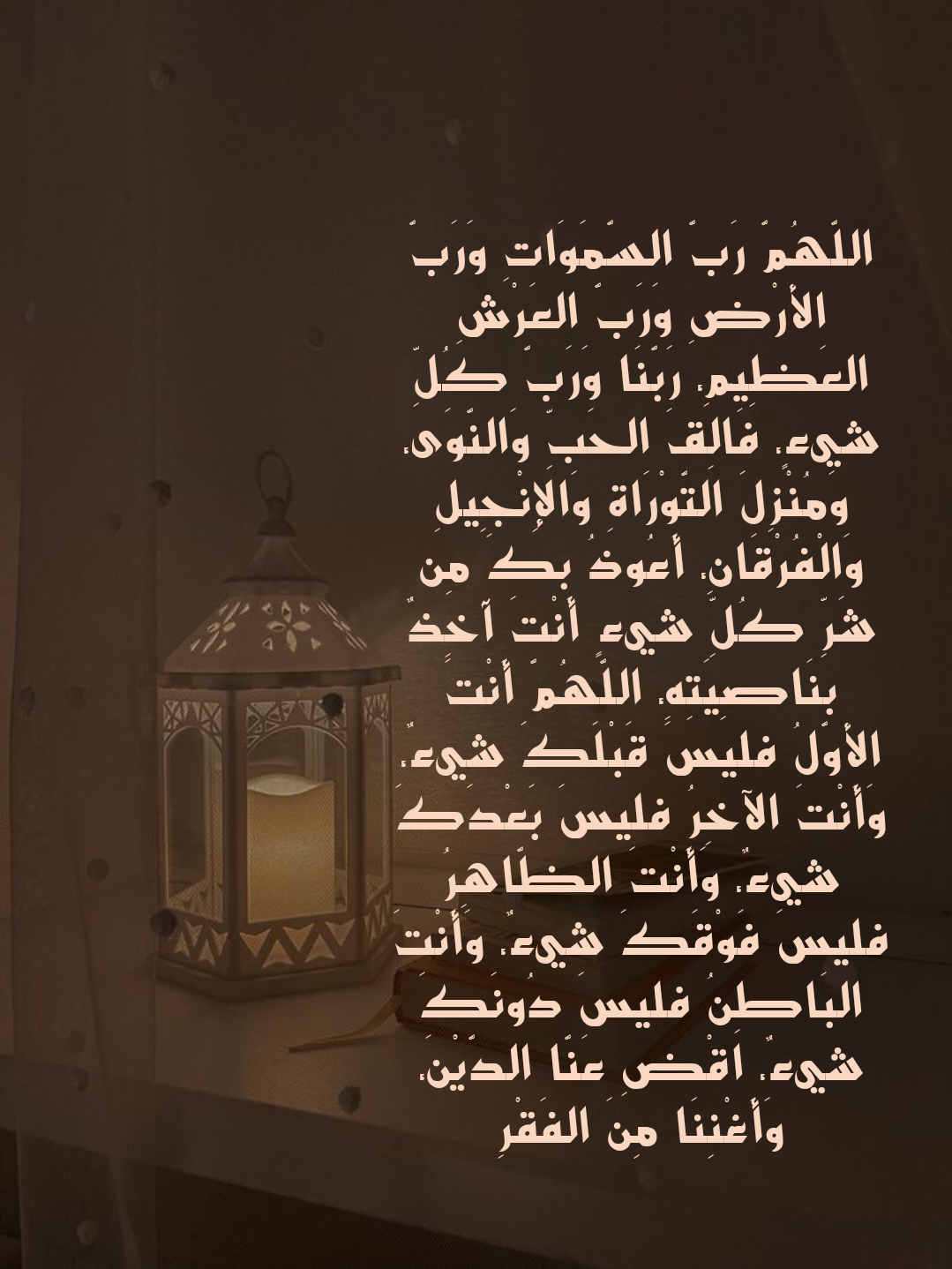- يا الله اجعل أعمالنا من الصيام والقيام ترفع إلينا قبولاً ورضا منك، واجعل تلاوتنا ودعاءنا شافعًا لنا يوم القيامة، اللهم تقبله منا احفظنا بحفظك واهدنا بهداك وبارك لنا في أرزاقنا واصرف عنا الشرور إنك أنت العفو الكريم سبحانك ربنا وتعاليت يا أرحم الراحمين.
