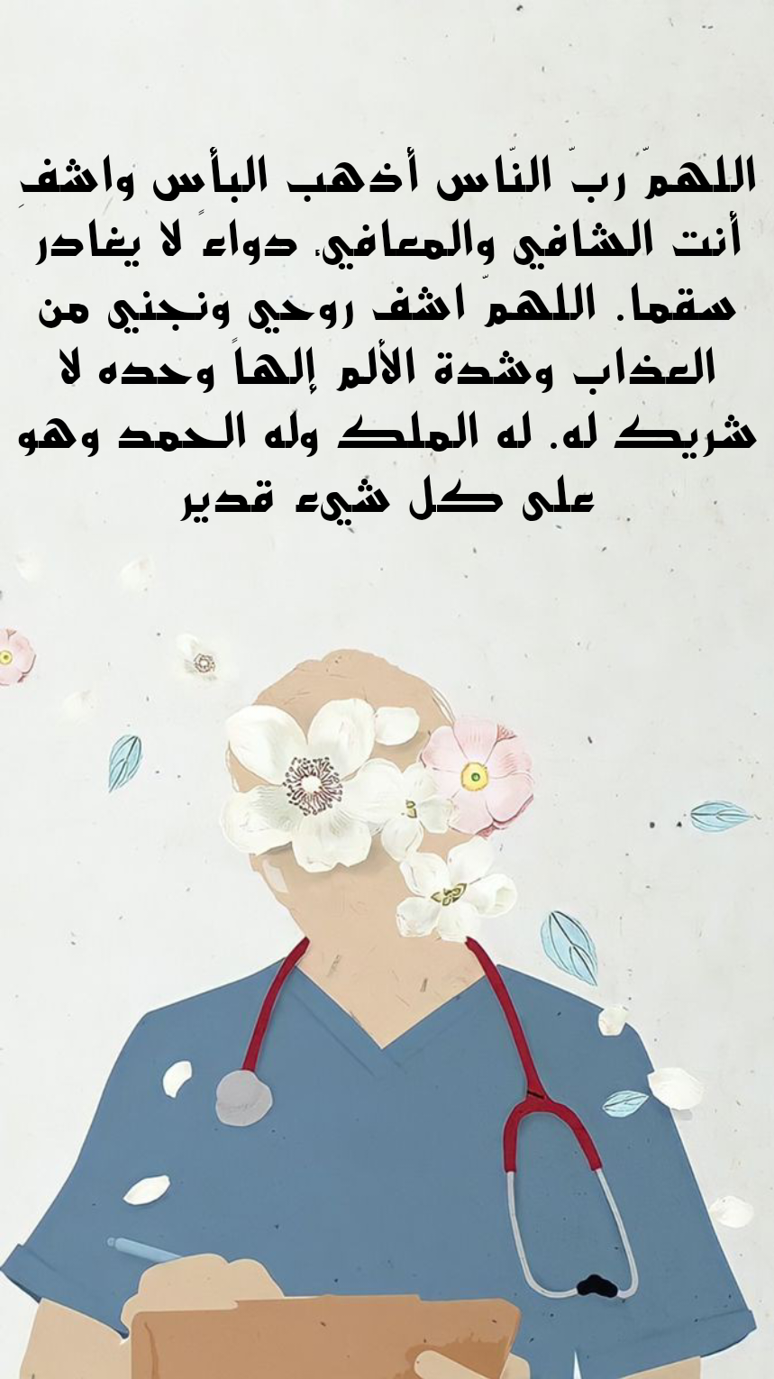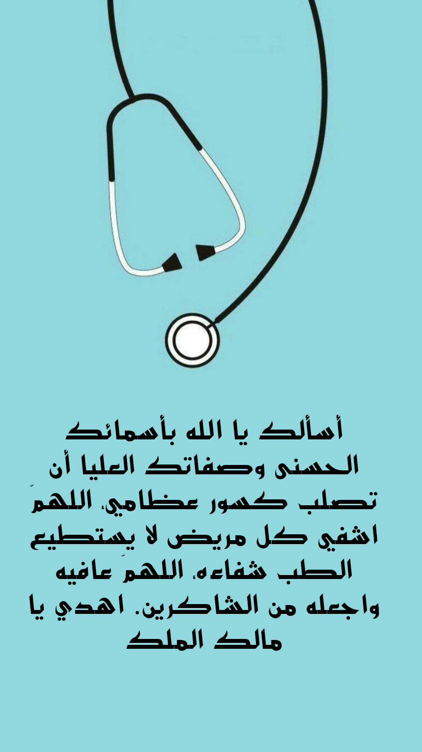 - يا الله أدعوك بأسمائك الحسنى وصفاتك العُلى أن تُكرمني بالشفاء العاجل من هذا المرض الذي أعاق حركتي ومنع عني الراحة، اللهم اشفِ كل مُبتلى طال مرضه وقلّ دواؤه وامنحني عافية لا يعقبها ألم وقوة لا يشوبها ضعف أبدًا.