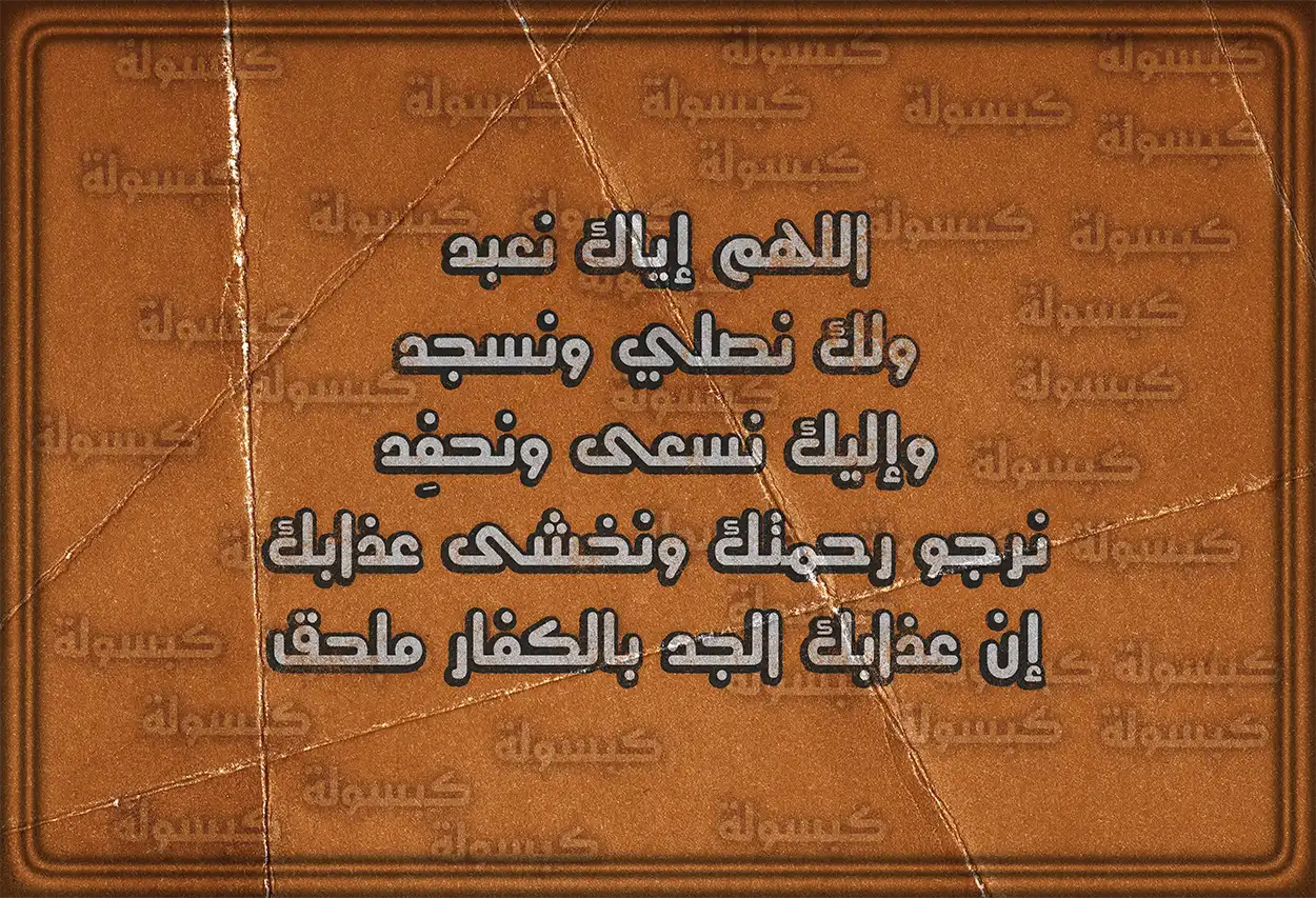 - “اللهم إياك نعبد، ولك نصلي ونسجد، وإليك نسعى ونحفِد، نرجو رحمتك ونخشى عذابك، إن عذابك الجد بالكفار ملحق”.
