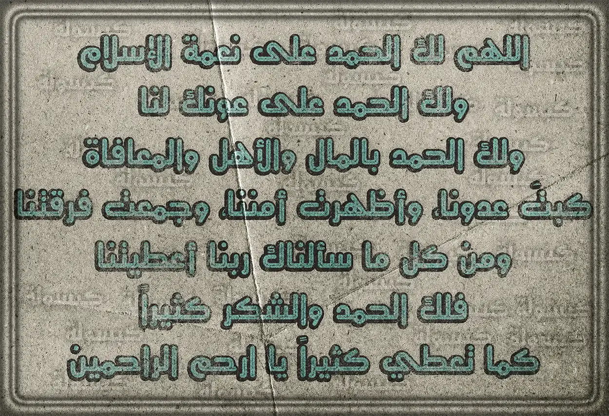 - “اللهم لك الحمد على نعمة الإسلام، ولك الحمد على عونك لنا، ولك الحمد بالمال والأهل والمعافاة، كبتَّ عدونا، وأظهرت أمننا، وجمعت فرقتنا، ومن كل ما سألناك ربنا أعطيتنا، فلك الحمد والشكر كثيراً كما تعطي كثيراً يا ارحم الراحمين”.