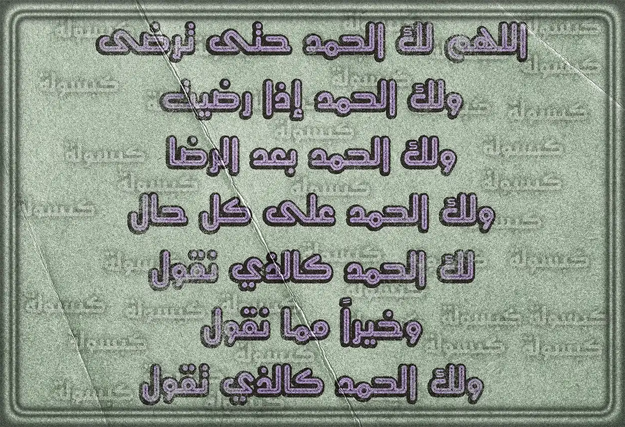 - “اللهم لك الحمد حتى ترضى، ولك الحمد إذا رضيت، ولك الحمد بعد الرضا، ولك الحمد على كل حال. لك الحمد كالذي نقول، وخيراً مما نقول، ولك الحمد كالذي تقول”.