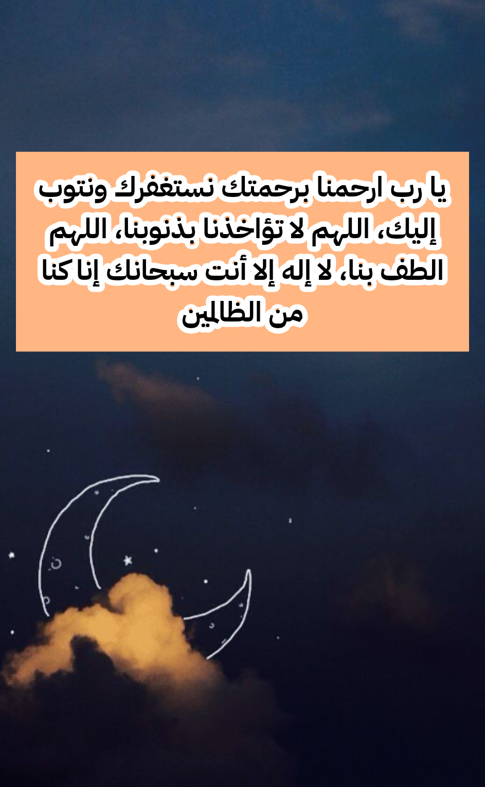 - سبحانَك يا اللهُ غُفرانَك سبحانَك خلقتَ الليلَ والنهارَ والشمسَ والقمرَ وكلٌّ منهم يسيرُ بأمرِك ويسبِّحُ بحمدِك يُسبِّحُ لكَ كلُّ ما في السماواتِ والأرضِ سبحانَك ما عبدناكَ حقَّ عبادتِك وما شكرناكَ حقَّ شكرِك.
