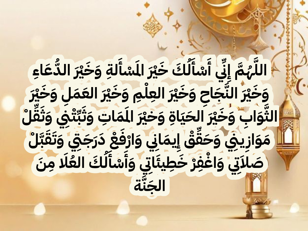 - 🤲 اللهم بلغنا رمضان واكتب لنا فيه القبول وزدنا فيه من الخشوع والإخلاص واجعلنا ممن يُحسنون الصيام والقيام وتلاوة القرآن بقلوب خاشعة.