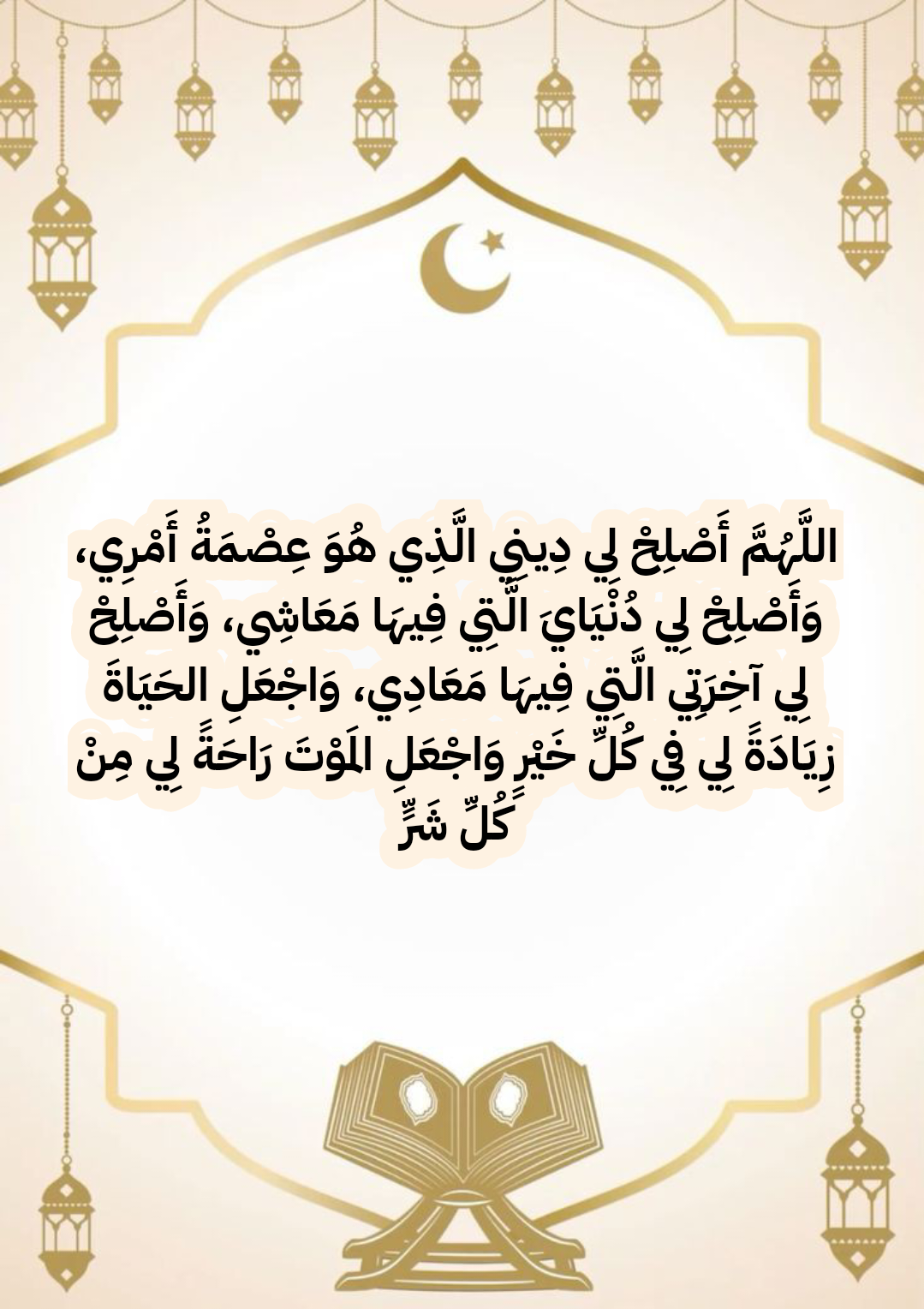 - اللهم اجعل شهر رمضان شاهدًا لنا لا علينا وأعنا فيه على الصيام والقيام وتدبر القرآن بخشوع وصدق نية واجعل قلوبنا عامرة بالإيمان والطمأنينة.