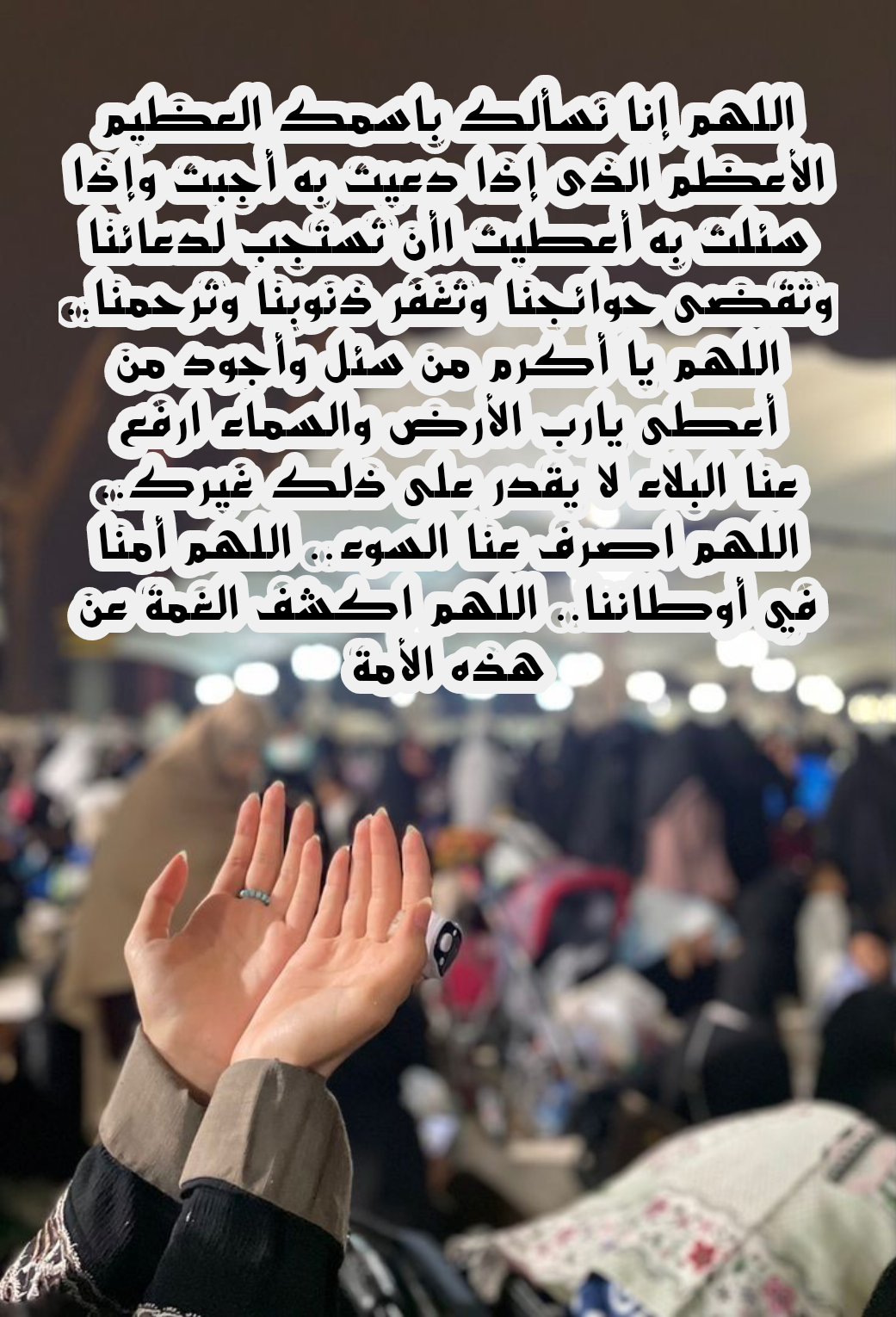- اللهم نسألك أن تحفظ دماء المسلمين وتمنحهم الأمن والاستقرار وتصرف عنهم شر الفتن التي يبثها أهل الفساد واجعل لكل بلاد المسلمين رحمة ونجاة من كل محنة.