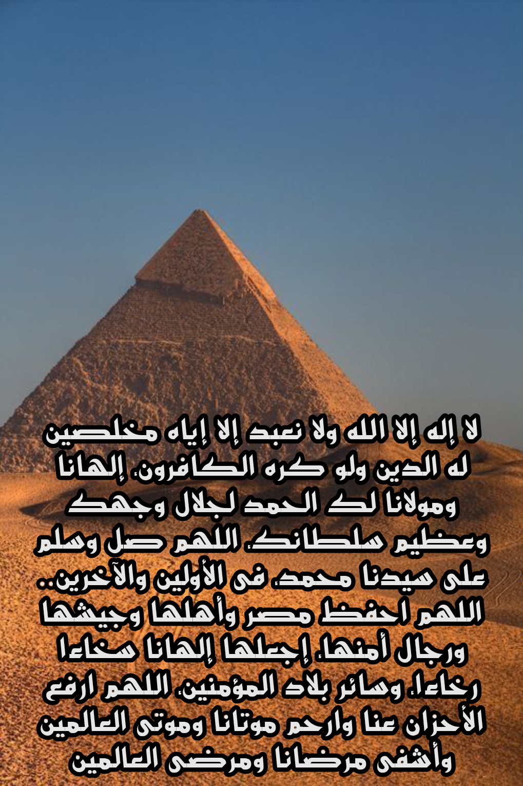 - اللهم لا ملجأ لنا إلا أنت نستعين بك ونتوكل عليك اللهم احرس مصر بعينك التي لا تنام واحفظها بركنك الذي لا يُضام وأكرمها بحفظك وأمنك ورعايتك يا أرحم الراحمين.